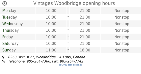 It is also possible to : Edit these OPENING HOURS of Store Vintages In Woodbridge, 8260 HWY. # 27,